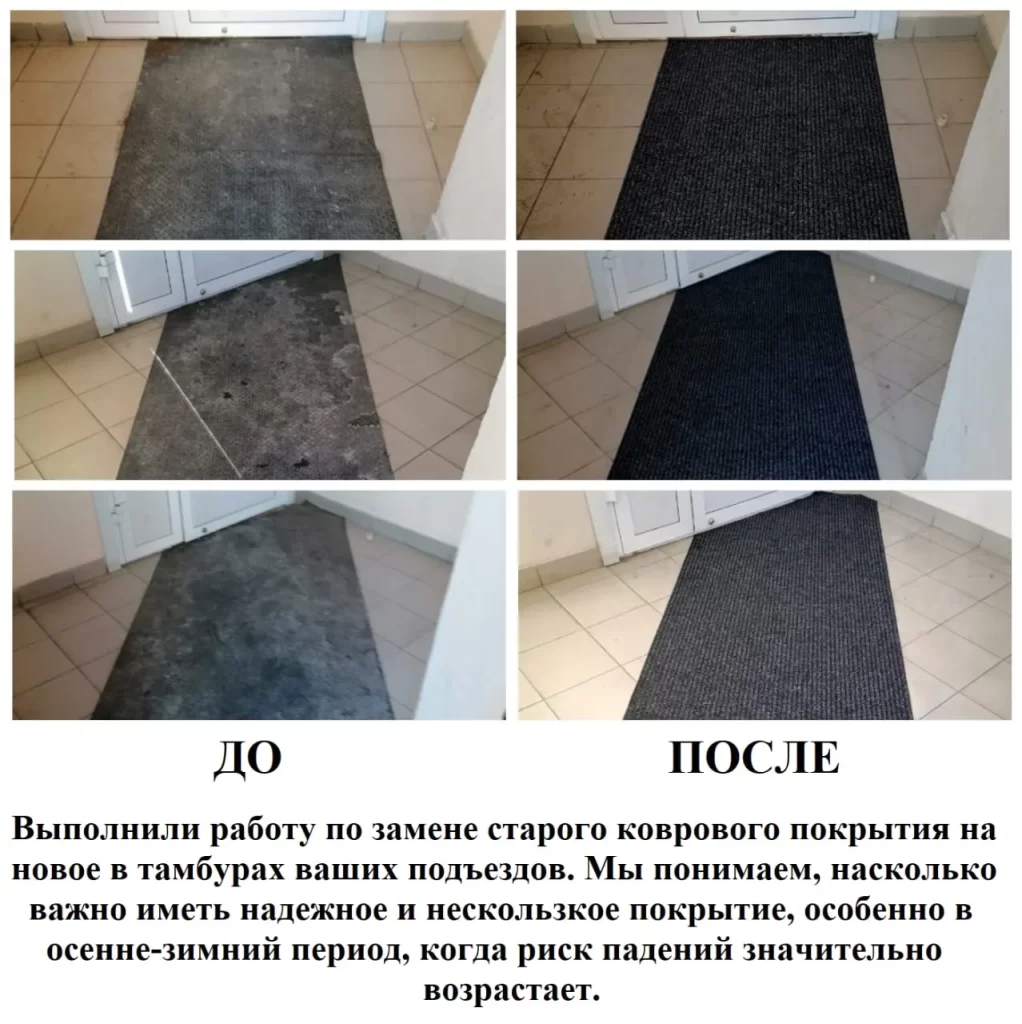 Выполнили работу по замене старого коврового покрытия на новое в тамбурах ваших подьездов