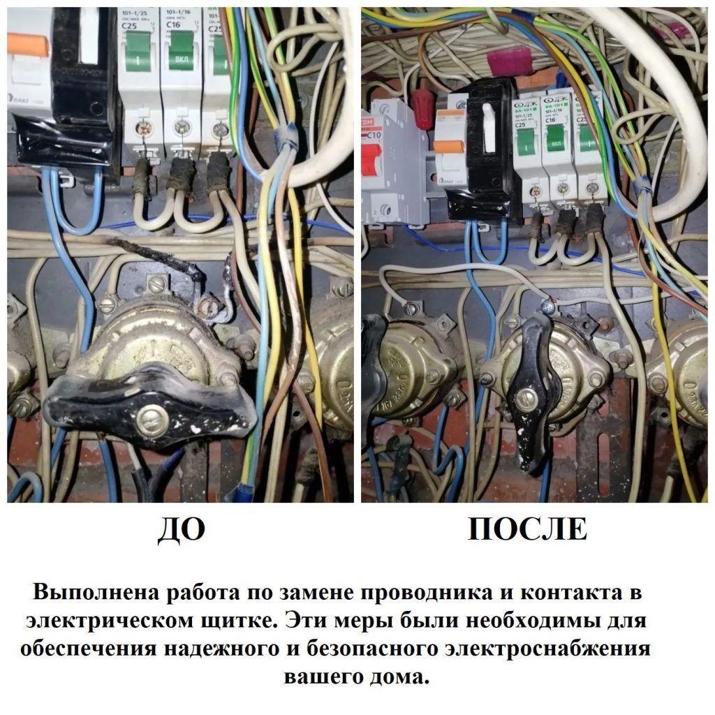 Выполнена работа по замене проводника в электрическом щитке