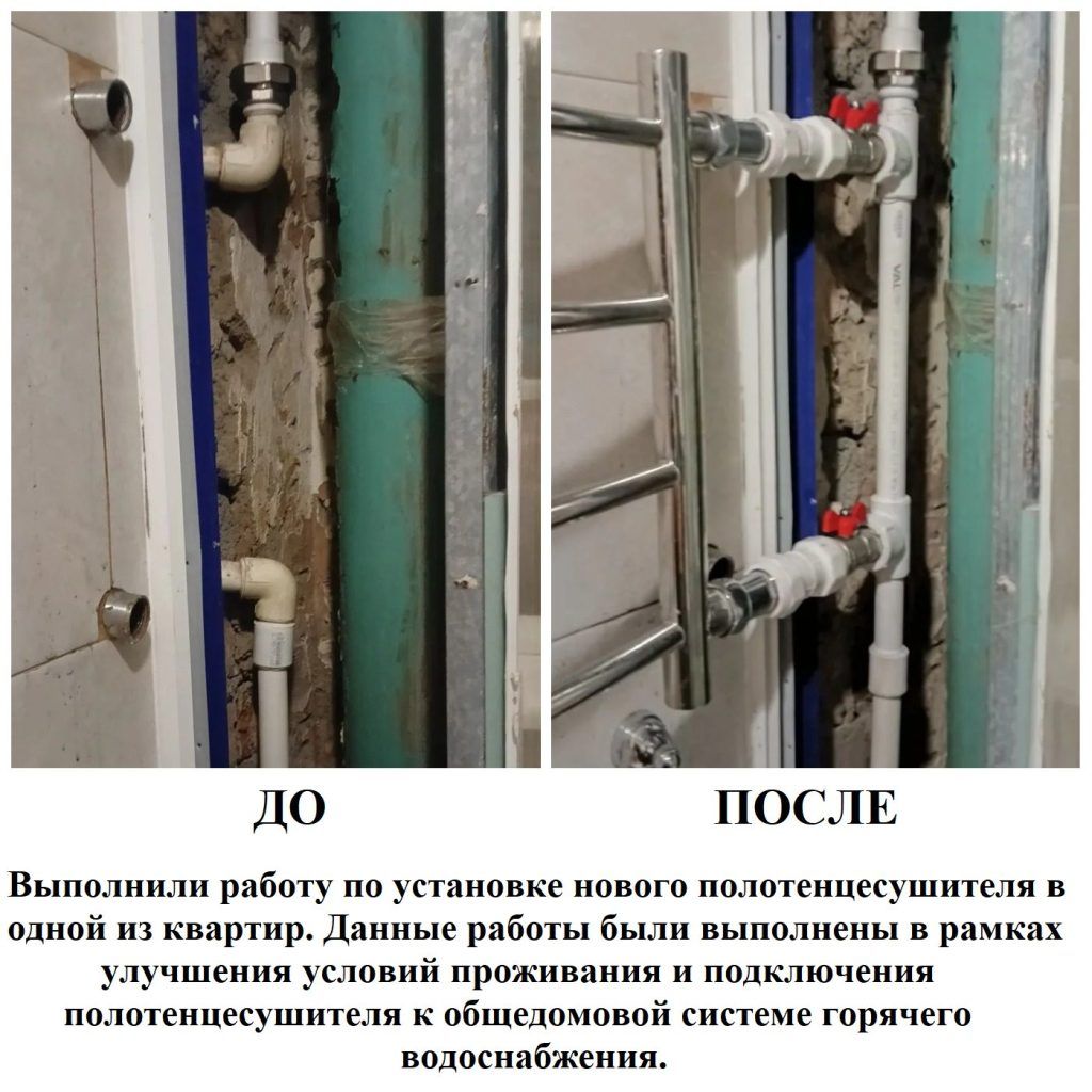 Выполнили работу по установке нового полотенцесушителя