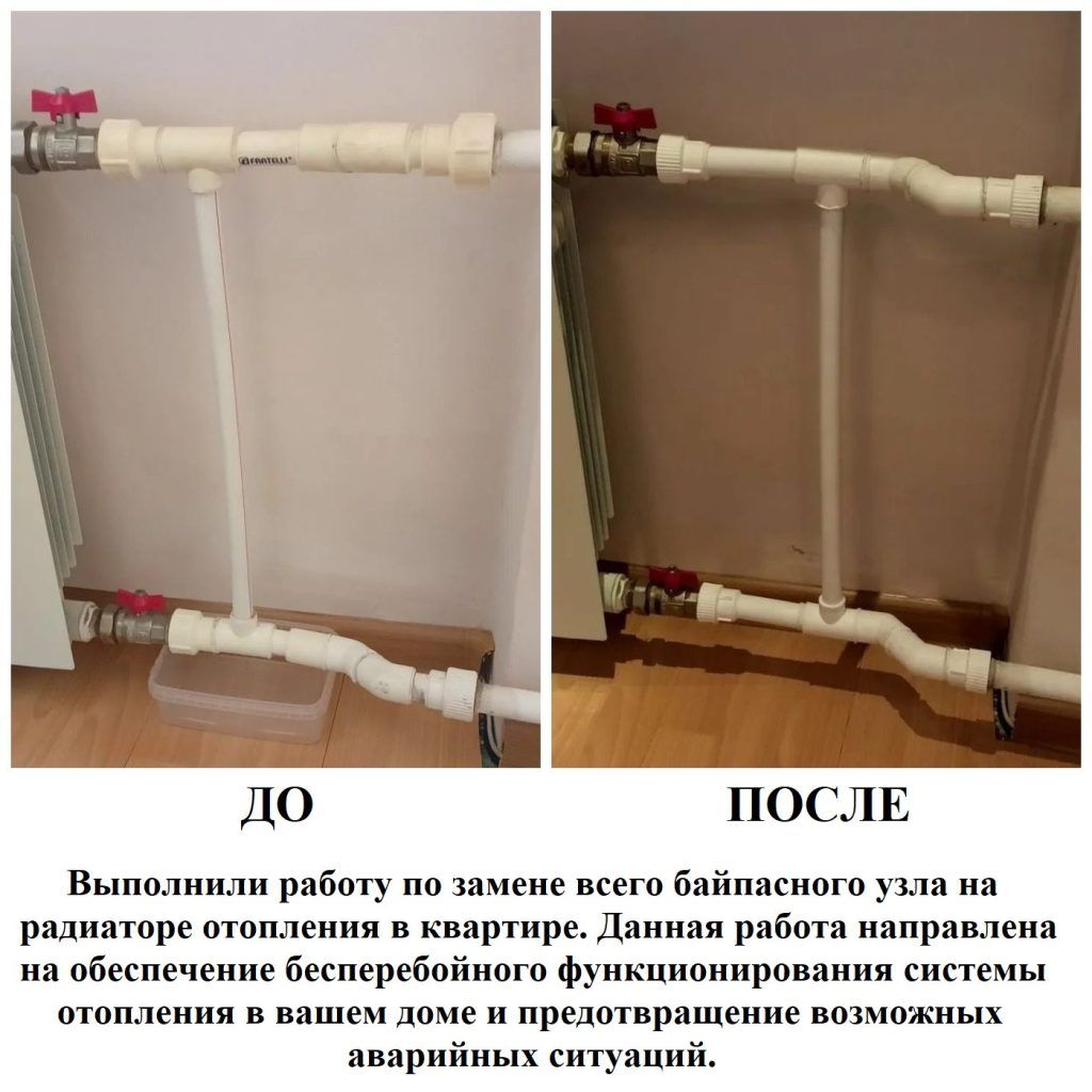 Выполнили работу по замене всего байпасного узла на радиаторе отопления в квартире